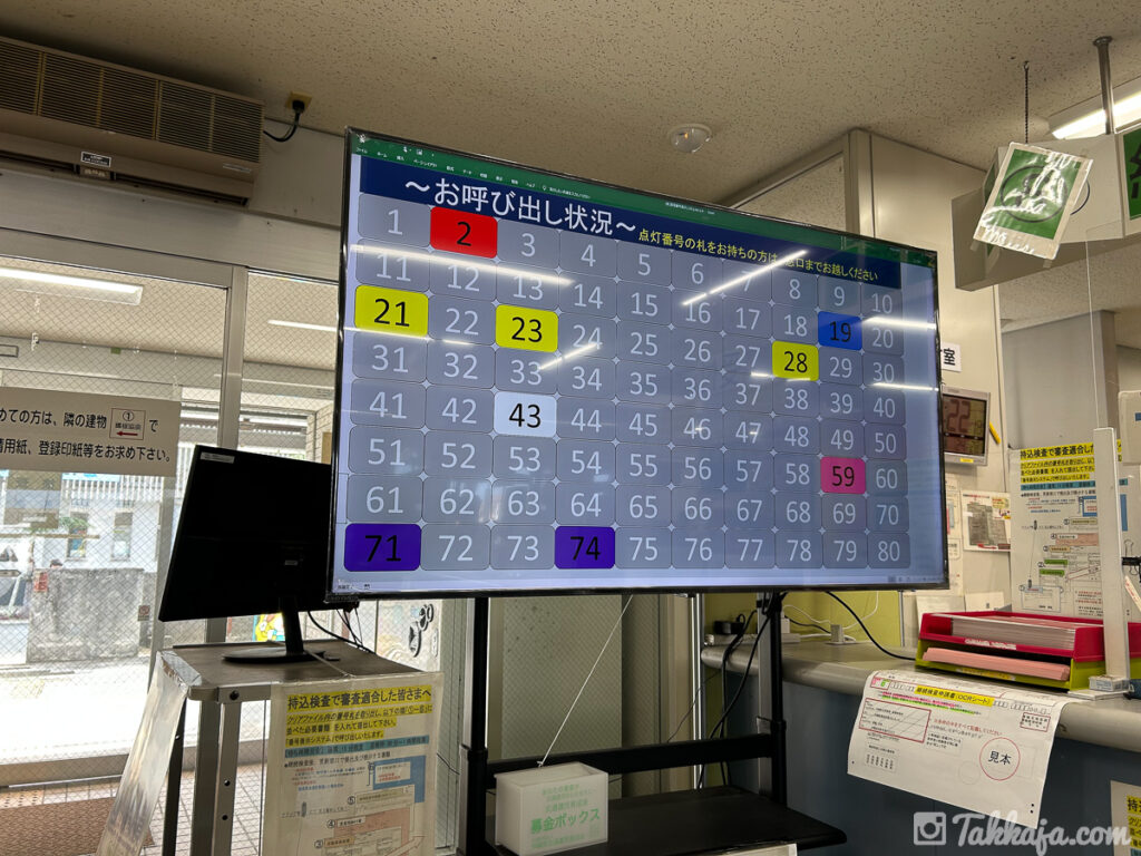 書類を提出して順番を待つ。