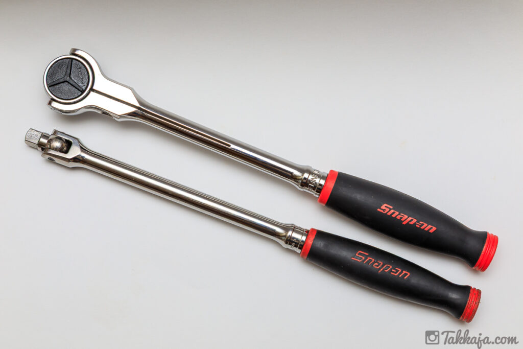 パキッと緩めたあと、ドライバーみたいに立て回しするというスタイルはバイク整備では有効なので、スイベルラチェット入手するまでは使用頻度高かった。