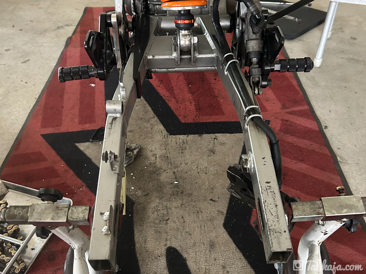 昔だったら絶対考えないし、街乗りしかしてない人だと自分のバイクのスイングアームの取り外しなんてまず一生やらない作業。