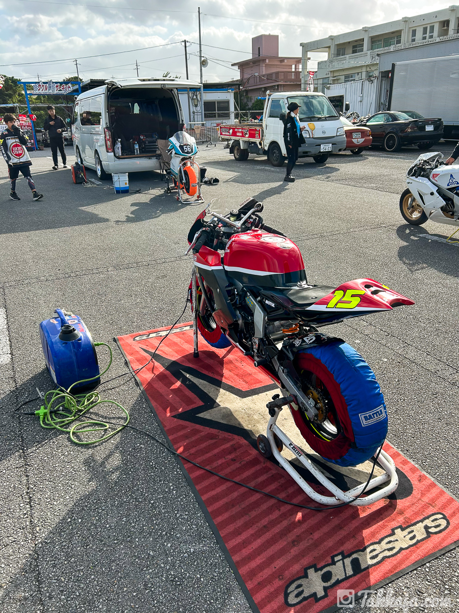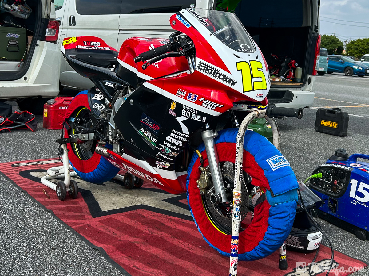 1本目の走行が終えてからリアのスプロケを1丁ロングに。