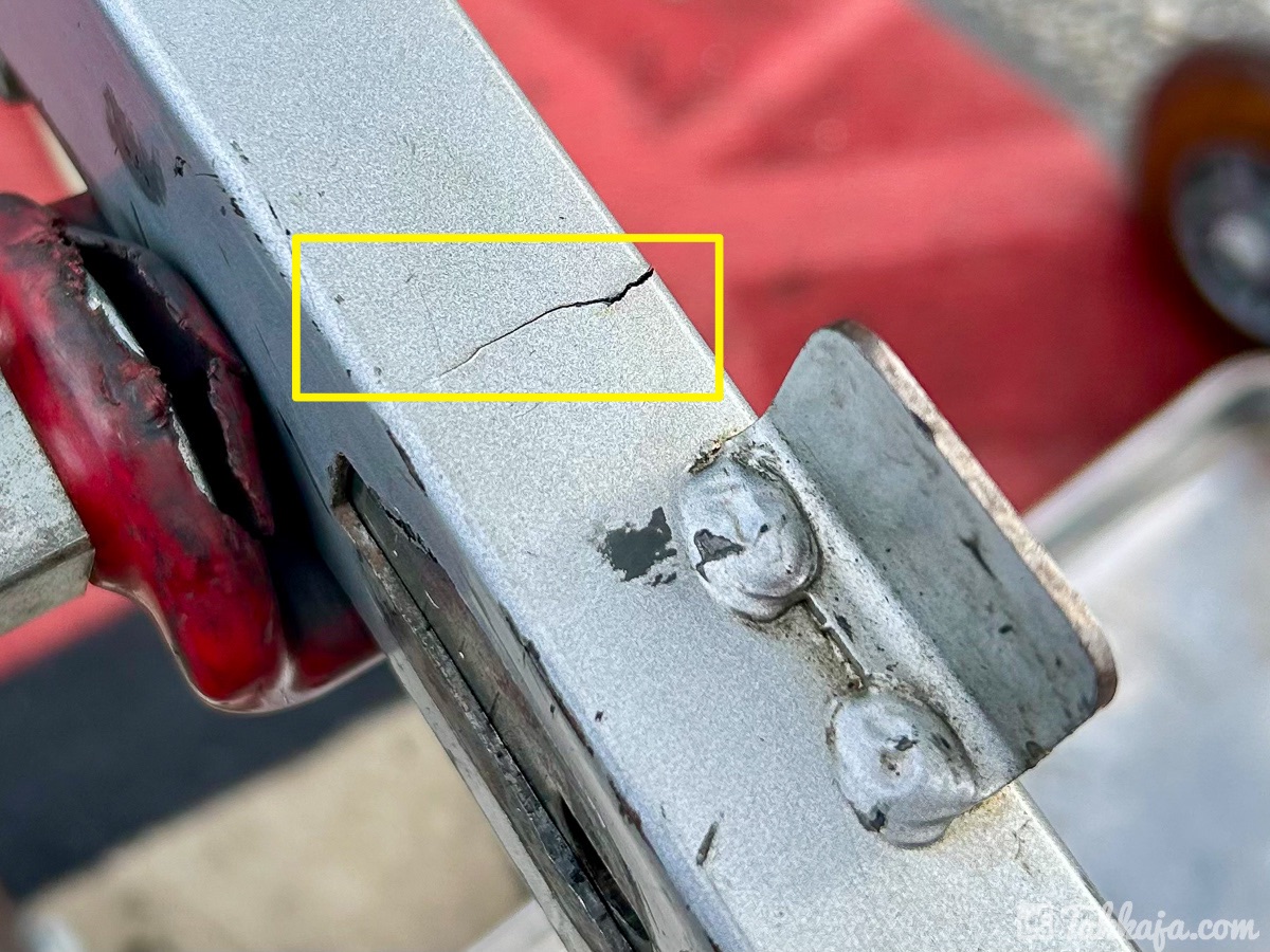 走行後にマシンチェックしてるとリアスイングアームの上面にクラック発見。