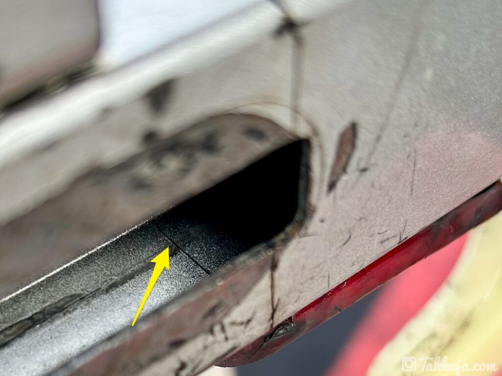 古くて傷だらけのスイングアームなので、いままで見逃してしまっていたのかもしれません