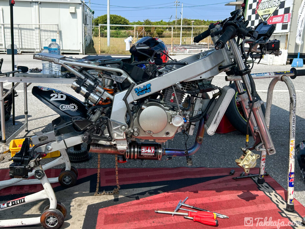 もうタイヤもボロボロなので、タイヤ新品だともう少し詰められそうですが、そろそろ吹っ飛びそうで怖いですw