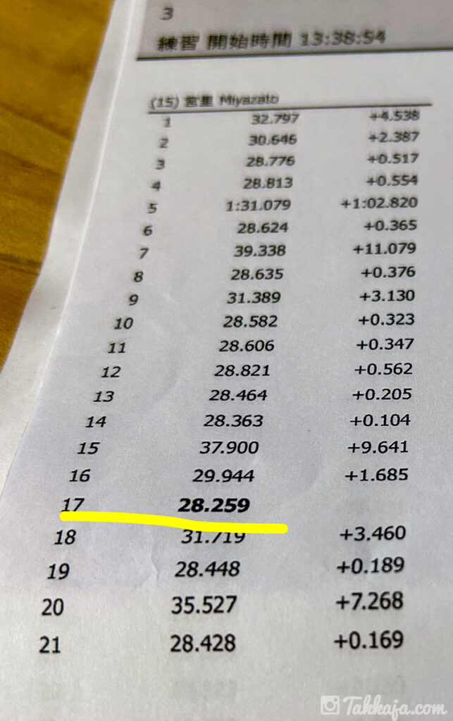 路面コンディションがあまり良くないっぽい割にはタイムは悪くはないけど、リズムに乗れないというか苦手なコーナーで安定しない。
