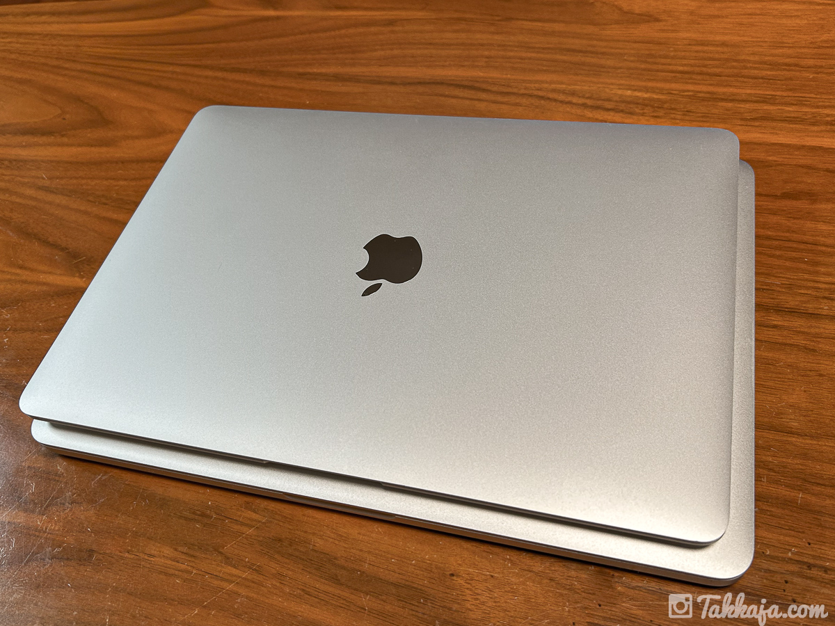 手持ちの2017 MacBookProと重ねてみたらこんな感じ。