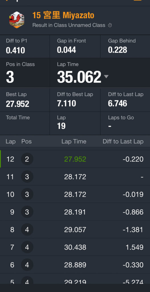 1周だけだとはいえ、この日にここまでタイムが詰まるとは思わなかったので、びっくり。
