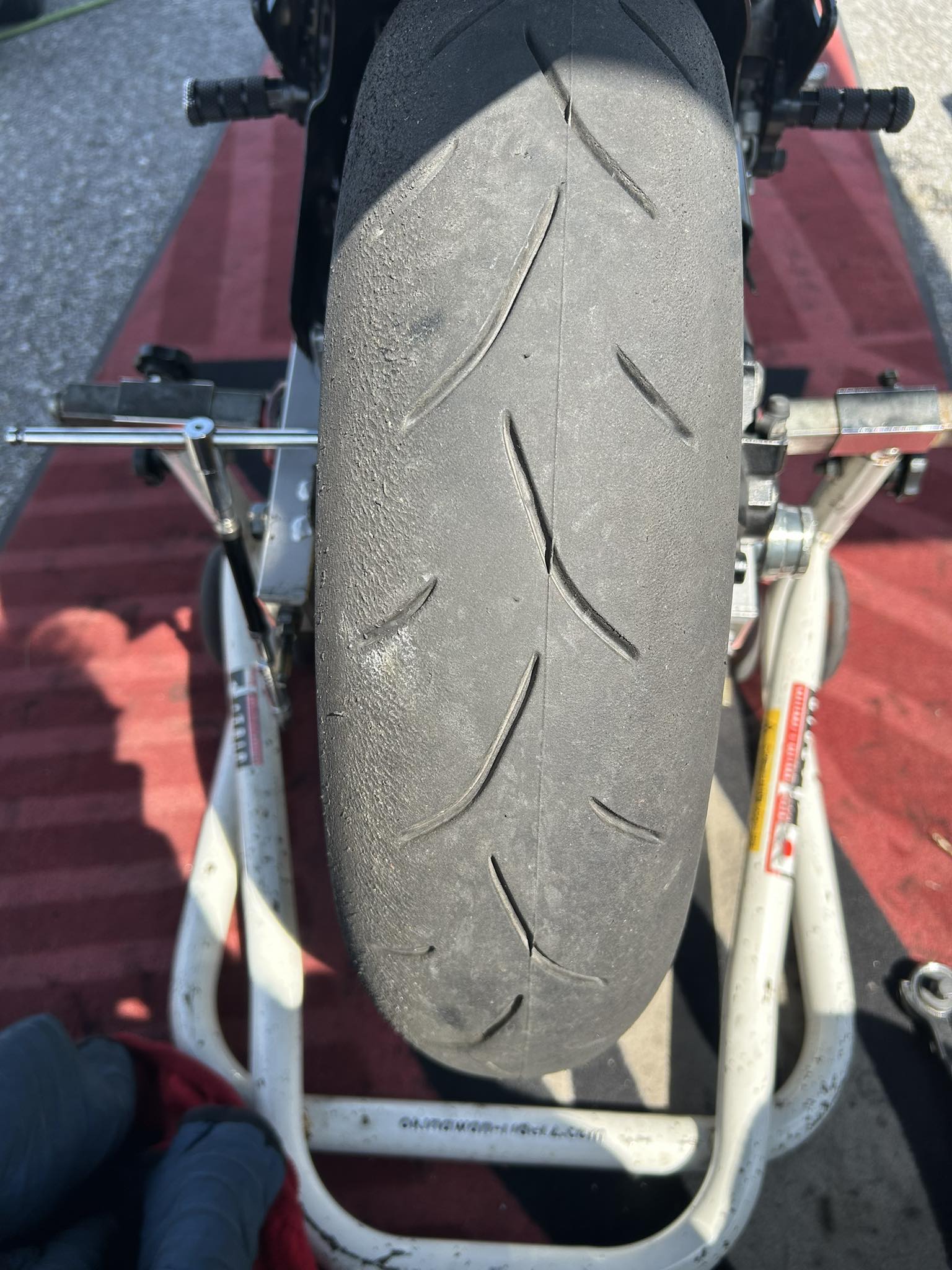 1本目は摩耗が進んだタイヤで走行開始。