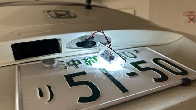 自動車部 フリードスパイク LEDナンバー灯が切れたので交換。